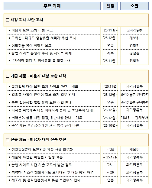 우선, 해킹에 취약한 IP카메라에 대한 보안조치 이행 안내와 피해자 보호를 추진한다.