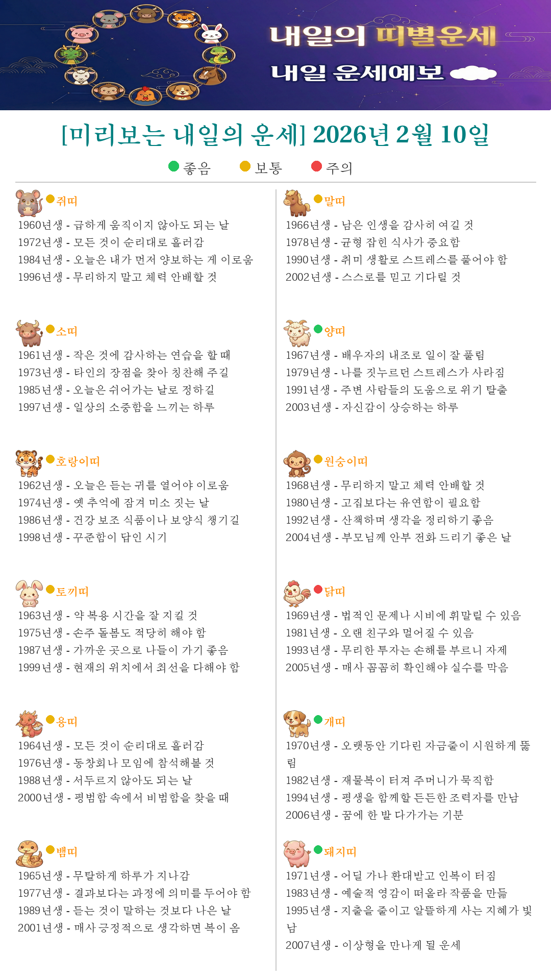 [미리보는 내일의 운세] 2026년 2월 10일