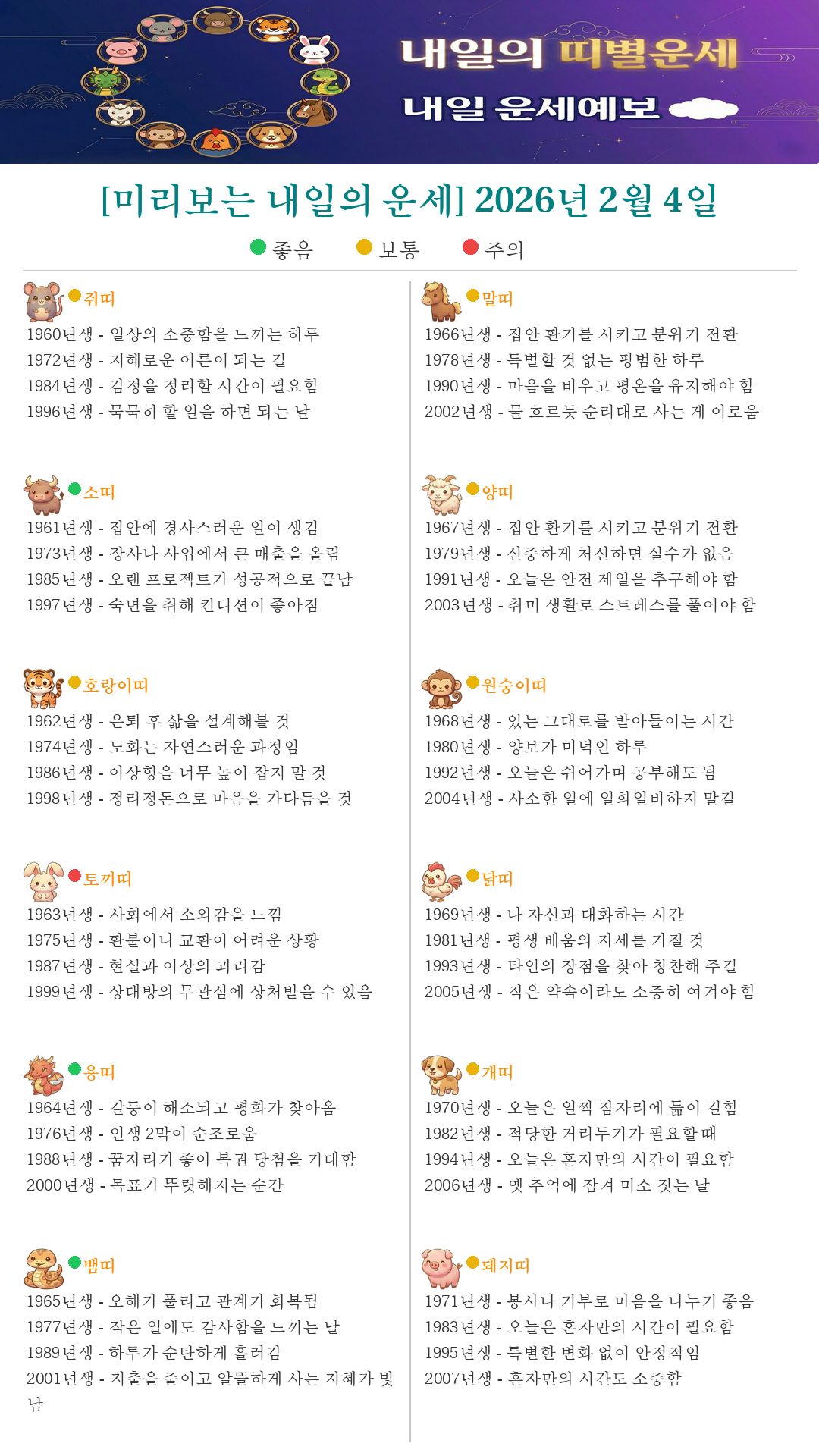 [미리보는 내일의 운세] 2026년 2월 4일
