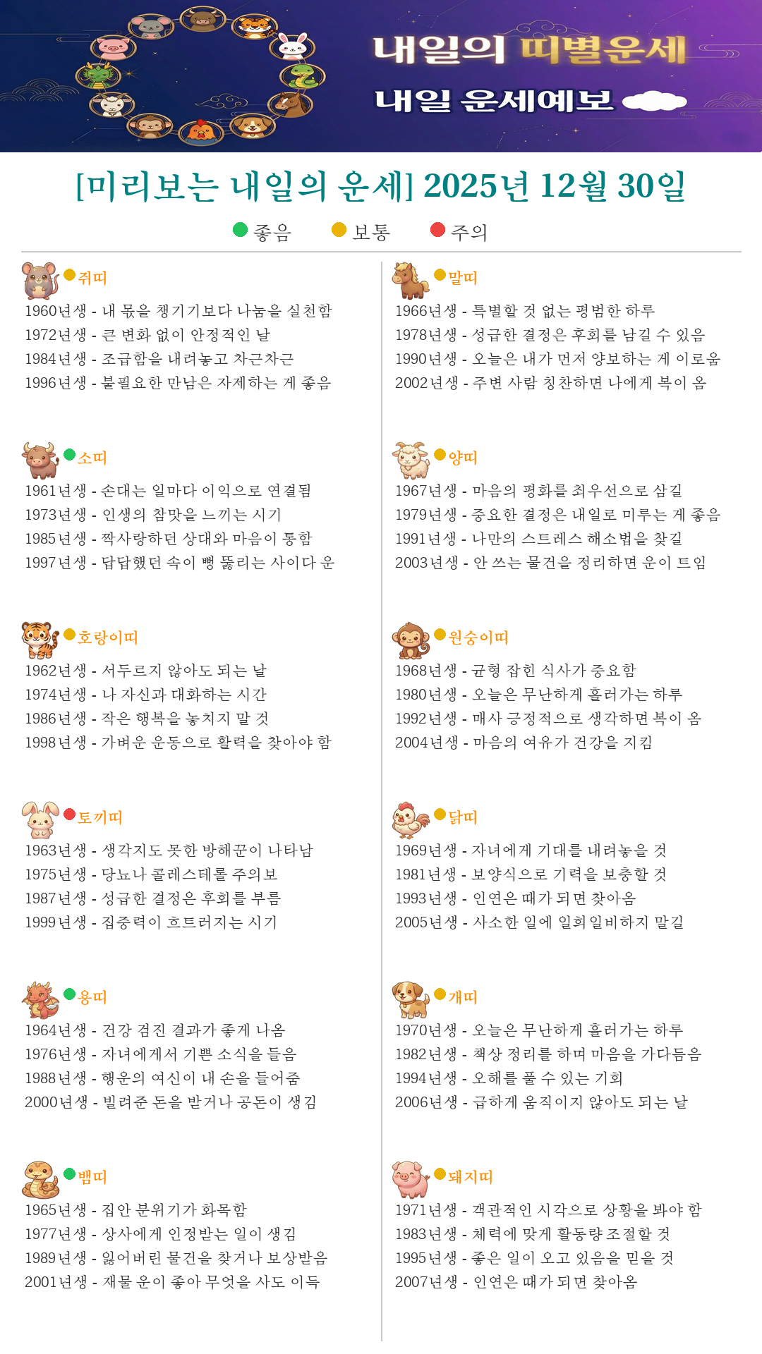 [미리보는 내일의 운세] 2025년 12월 30일