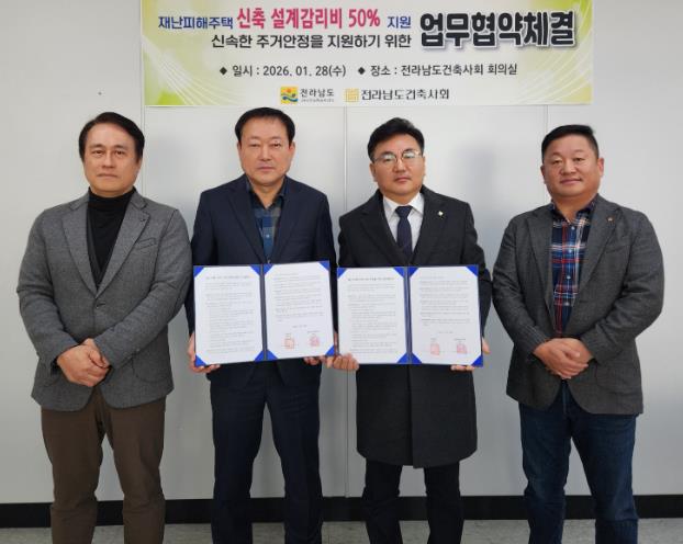 문인기 전남도 건설교통국장은 “협약을 통해 재난 피해 주민이 보다 빠르게 일상과 주거를 회복하도록 민·관 협력을 한층 강화하겠다”며 “도민의 안전과 주거 안정을 최우선에 두고 재난 대응 체계를 지속해서 보완하겠다”고 말했다.