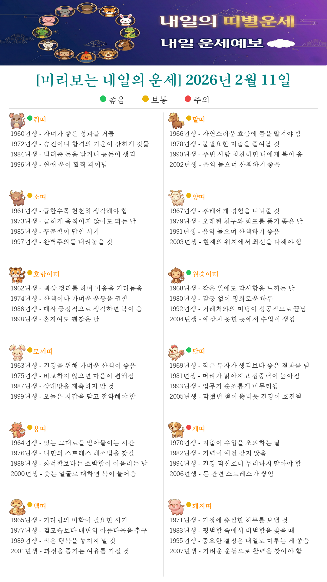 〈퇴근길 미리보는 내일의 띠별운세〉와 함께 내일을 준비한다면,