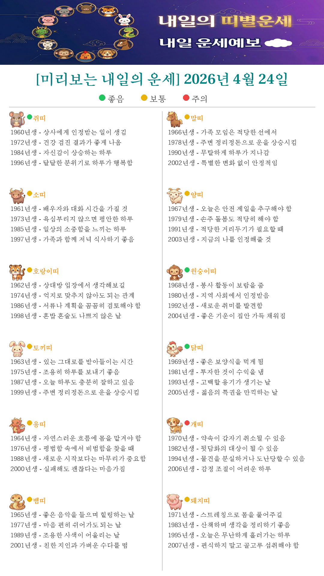 〈퇴근길 미리보는 내일의 띠별운세〉와 함께 내일을 준비한다면,