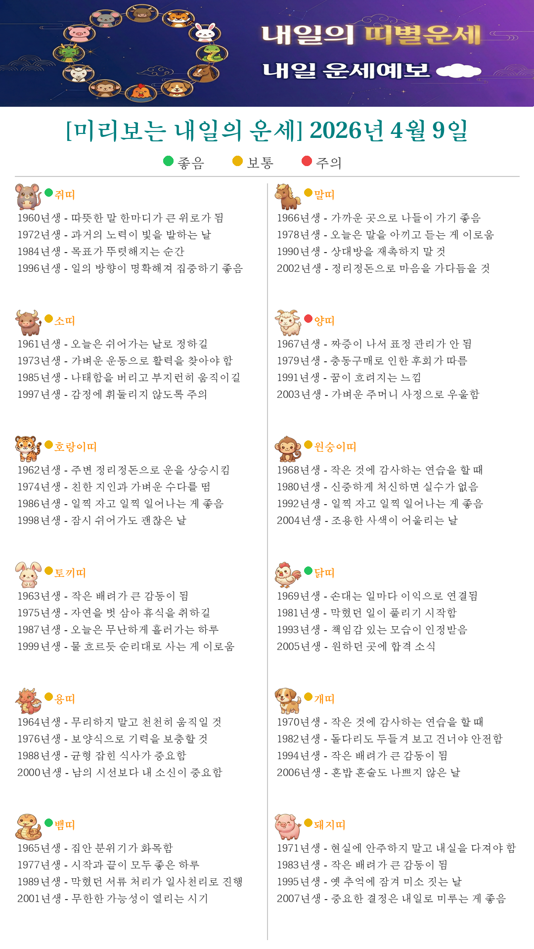 〈퇴근길 미리보는 내일의 띠별운세〉와 함께 내일을 준비한다면,
