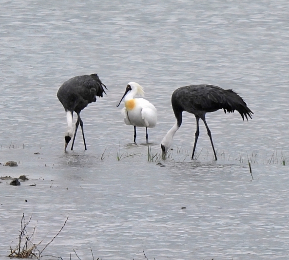 순천만 복원습지서 ‘흑두루미·저어새’ 한 장면 포착