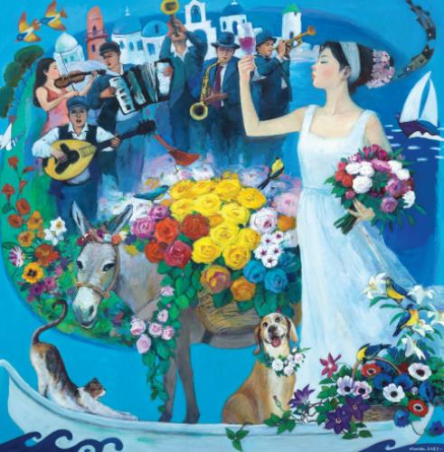 꽃과 여인, 사람, 자연의 순환을 색채의 흐름으로 연결하여 꽃과 사랑이 우리 곁에 늘 함께 머물고 있음을 작품으로 표현했다”라고 말했다.