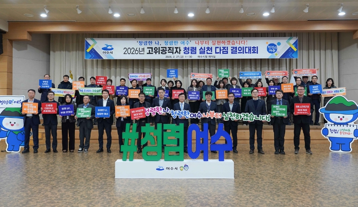 한편, 여수시는 결의대회를 시작으로 ▲반부패 법령에 대한 이해도 향상 ‘청백리 골든벨’ ▲직원 대상 ‘반부패 청렴시책 공모’ ▲청렴 시책 참여 확대 ‘청렴 마일리지’ ▲소통 기반의 청렴문화 확산 ‘찾아가는 청렴 간담회‘ 등을 통해 신뢰받는 공직사회 구현에 최선을 다할 계획이다.