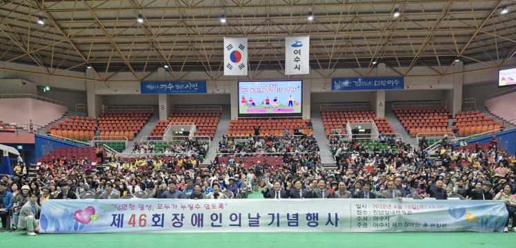“당연한 일상, 모두가 누릴 수 있도록”이란 슬로건으로 열린 이번 행사는 여수시재가장애인총연합회 주관으로 정현구 여수시장 권한대행을 비롯한 여수시의회 의장, 시‧도의원, 장애인, 가족, 자원봉사자 등 900여 명이 참석했다.