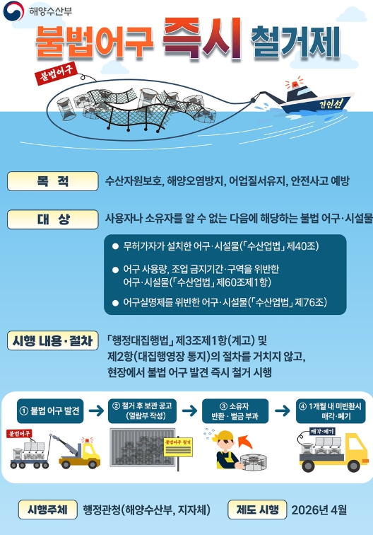 시 관계자는 “불법 어구 문제를 보다 주도적으로 해결하고, 해양환경 보호와 지속가능한 수산업을 위한 기반 마련에 큰 도움이 될 것”이라며 “어업인들을 대상으로 적극 홍보하겠으며, 많은 협조와 관심을 부탁드린다”고 밝혔다.