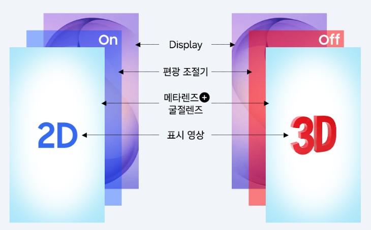 전압이 없을 때는 오목렌즈로 작동해 고해상도 2차원(2D) 화면을 왜곡 없이 보여주다가, 전압이 공급되면 볼록렌즈로 작동하며 기존 기술보다 시야각이 6배 이상 넓은 100도의 ‘초 광시야각’으로 입체 영상을 구현한다. 이를 통해 여러 사람이 다양한 위치에서 동시에 몰입감 넘치는 3차원(3D) 영상을 즐길 수 있게 된 것이다.