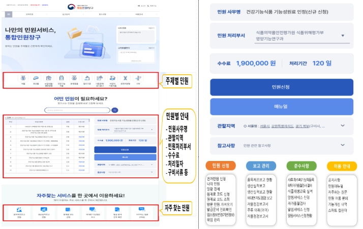 또한, 신청 내용이 복잡한 ‘품목제조보고 변경’ 민원에 대해 원재료와 영양정보의 변경 전·후를 한눈에 비교할 수 있는 화면을 제공한다.