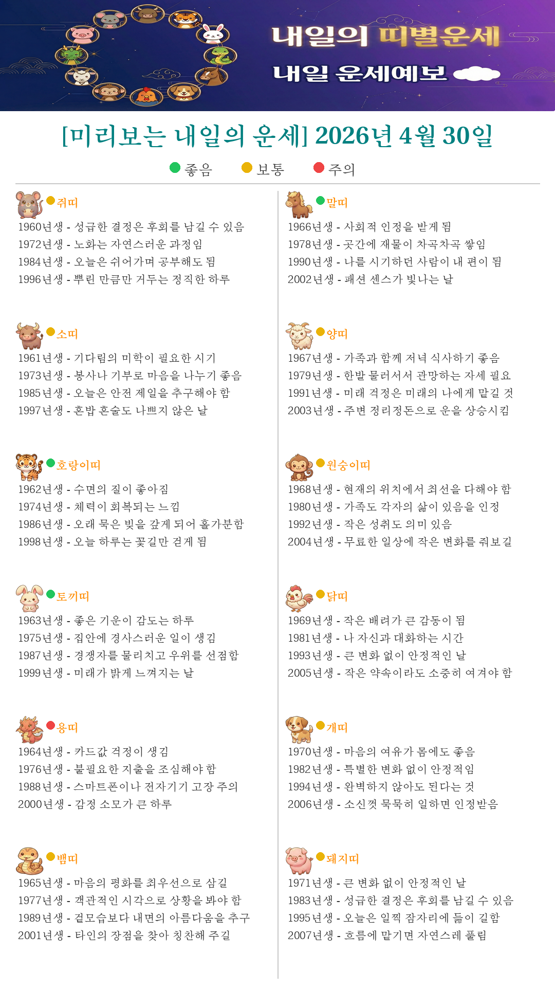 〈퇴근길 미리보는 내일의 띠별운세〉와 함께 내일을 준비한다면,
