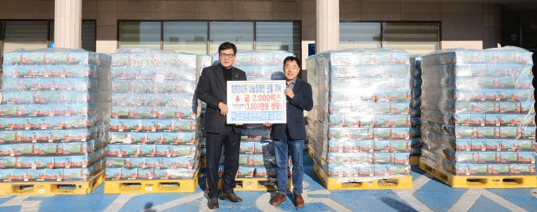 함평군은 23일 “동함평산단에 자리한 ㈜고려진공안전(대표 김광자)이 지난 22일 감귤 2,000박스를 군에 전달하며 ‘희망2026 나눔캠페인’에 동참했다”고 밝혔다.