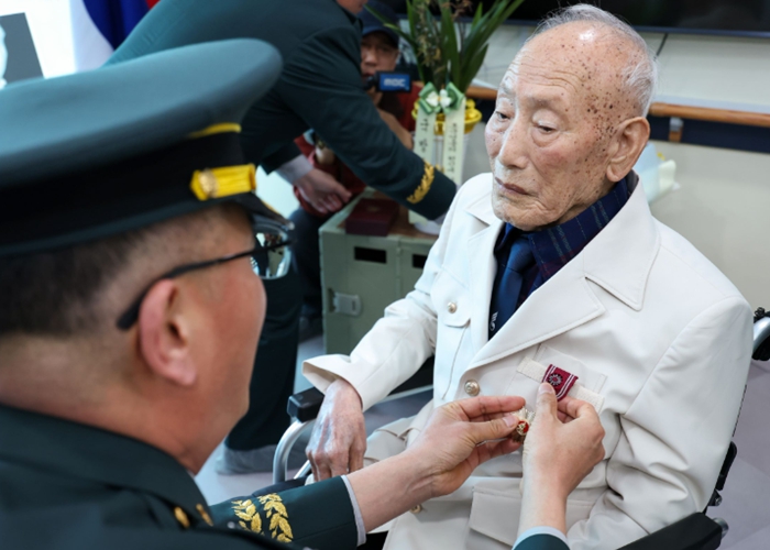 군은 지난 24일 삼호읍 효누림요양원에서 국방부 ‘6·25전쟁 무공훈장 찾아주기 사업’의 일환으로 훈장 전수식을 진행했다.