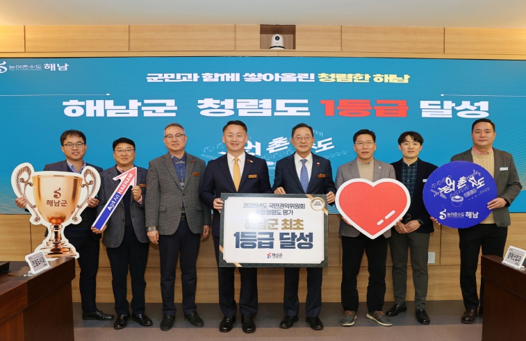 군 관계자는“1등급 달성은 공직자들의 노력뿐만 아니라, 청렴 행정에 공감하고 함께해 준 해남군민 모두가 하나 되어 이룬 성과”라며 “그간 추진해 온 청렴 노력을 바탕으로, 청렴이 행정 전반에 안정적으로 뿌리내릴 수 있도록 지속적인 노력을 이어가겠다”고 밝혔다.