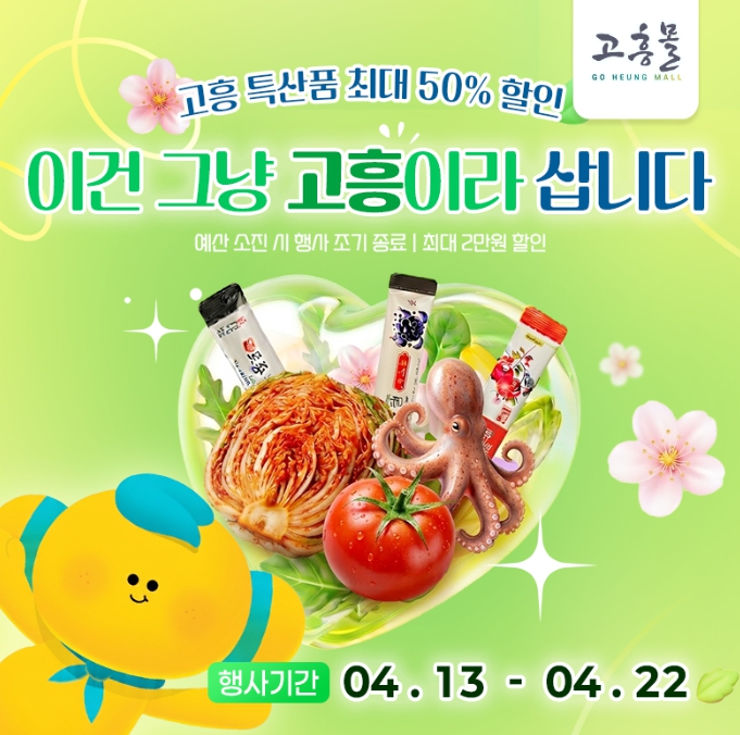 또한, 고흥몰은 최근 남도장터 연합몰 시스템과의 통합 운영 및 홈페이지 리뉴얼을 통해 상품 노출과 구매 동선을 개선하고 이용 편의성을 강화한 바 있으며, 이번 행사를 통해 변화된 플랫폼 경쟁력을 소비자들이 직접 체감할 수 있을 것으로 기대된다.