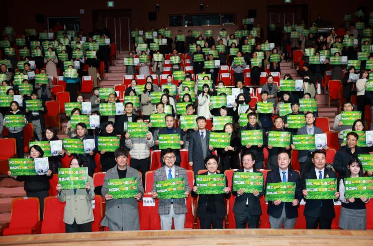행사의 마지막 순서로 진행된 공동 선언문 낭독에서는 김철우 보성군수, 김대중 전라남도교육감, 학생·학부모·교사 대표가 함께 보성교육의 미래를 향한 실천 의지를 다졌으며, 참석자 전원이 “보성, 르네상스를 꿈꾸다! 보성교육, 미래를 그리다!”라는 구호를 외치는 퍼포먼스를 통해 행사의 대미를 장식했다.