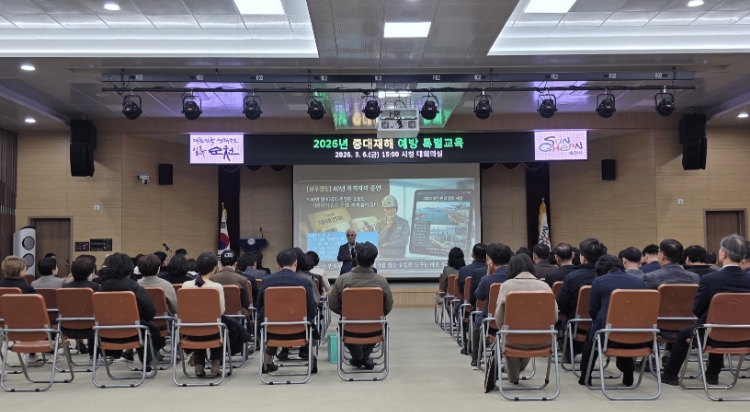 교육 주요내용은 △중대재해처벌법의 취지와 적용 범위 △최근 사고 사례 분석 및 시사점 △지자체의 책임 구조와 대응 방향 △안전보건 관계 법령상의 의무 이행 사항 등으로 구성·진행됐다.
