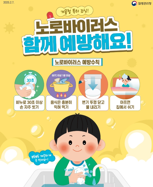 노로바이러스는 늦가을부터 이듬해 초봄(11월~3월)까지 영유아를 중심으로 유행하며, 오염된 음식물과 물을 섭취하거나 환자 접촉이 주된 감염원이다.