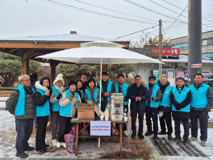 유영호 위원장은 “작은 정성이지만 매서운 추위 속에서 장을 보러 나오신 어르신들께 잠시나마 따뜻한 기운을 얻으셨으면 좋겠다”라며, “앞으로도 주변에 소외된 이웃이 없는지 세심히 살피고, 생활 밀착형 나눔 봉사를 지속해 온기 넘치는 능주면을 만들어 나가겠다”라고 말했다.