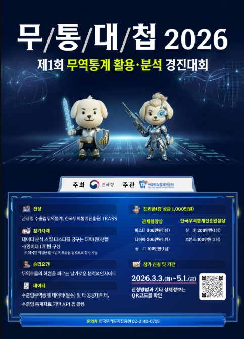 한편, 이번 경진대회는 관세청(주최)과 무역통계 전문기관인 한국무역통계진흥원(주관)이 공동으로 개최하여 대회 운영의 내실화는 물론 출품작의 품질관리에도 만전을 기한다는 방침이다.