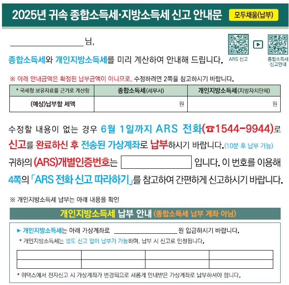 국세청은 납세자 중심의 신고 환경을 조성하기 위해 홈택스, 손택스, ARS 등 신고 시스템 전반을 고도화하고, 신고 안내문을 대폭 개선했다.