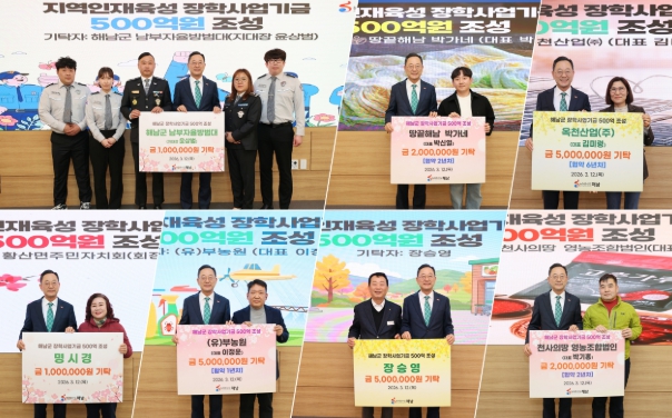 한편 해남군은 2032년 장학사업기금 500억원 달성을 목표로, 현재 237억 2,000만원의 장학사업기금을 조성했다.