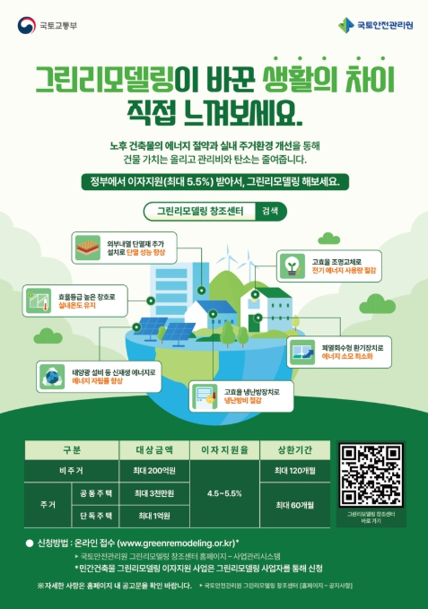 국토교통부는 지난 2년간 중단됐던 이자지원사업을 재개하면서, 국민 체감도를 높이고 대형 건축물의 참여를 활성화하기 위해 지원 조건을 대폭 개선한다.