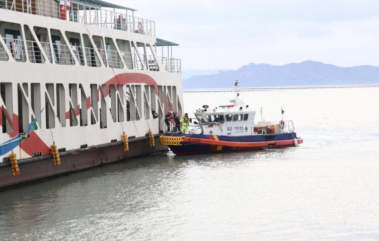 훈련은 열폭주와 유독가스 발생으로 대응이 까다로운 전기차 화재의 특성을 고려해 실전과 동일하게 △전기차 화재 발생 상황 전파 △질식소화포를 이용한 초기 진화 및 화재 확산 방지 △여객선 승객 대피 유도 △ 조난자 구조 △2차 사고 예방 조치 순으로 진행됐다. 완도해경은 사고 접수와 동시에 완도파출소 연안구조정을 현장에 급파해 조난자들을 신속히 구조하고, 소방서와 함께 전기차 특성에 맞춘 전문 진압 장비 운용법을 훈련했다.