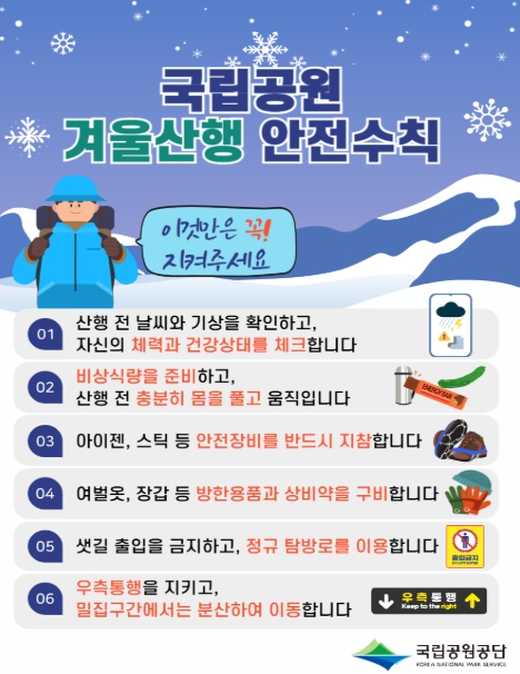 또한 고지대 주요 정상부 등 탐방객이 집중되는 지역 90곳에 안전 인력을 상시 배치하고, 탐방객 대상 안전수칙 준수 홍보활동을 강화한다.