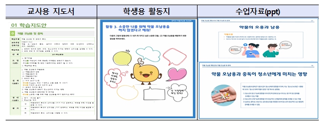 이에 따라, 교육부는 확대된 교육 시간에 맞춰 예방교육이 효과적으로 이루어지도록 2025년부터 교사용 지도서를 개발해 왔다. 지도서에는 마약류를 포함해 주요 유해 약물의 유해성, 약물의 올바른 사용 방법, 약물 관련 범죄 노출 방지 및 중독 예방 요령 등에 대한 내용을 담았다.