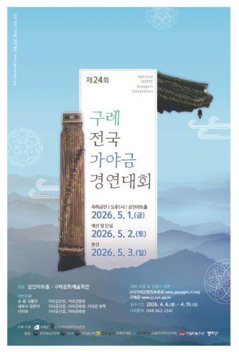 군 관계자는 “가야금 산조의 거장 서공철 명인의 고향이자 예향 구례에서 열리는 이번 대회는 경연과 기념공연이 함께 마련된 뜻깊은 자리”라며 “많은 관심과 참여를 바란다”고 말했다.