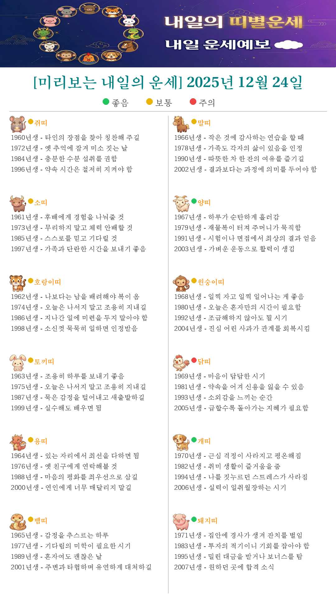 [미리보는 내일의 운세] 2025년 12월 24일