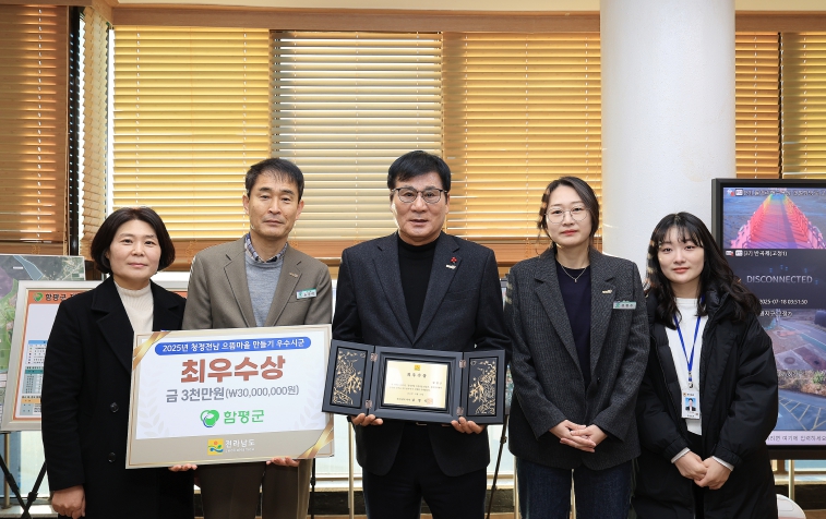함평군은 22일 전남도 주관 ‘2025년 청정전남 으뜸마을 만들기’ 시군 종합평가에서 최우수상에 선정돼 상사업비 3천만 원을 확보했다고 밝혔다. 이번 수상으로 함평군은 지난해 대상 수상에 이어 2년 연속 우수 성과를 거두며 지속 가능한 마을사업 추진 역량을 인정받았다.