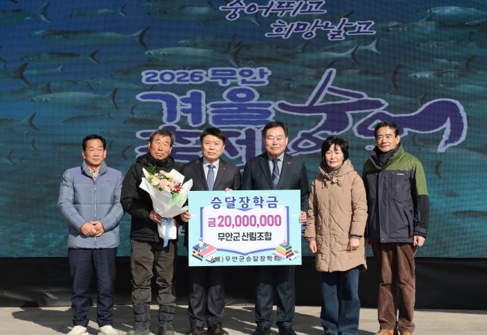 이번 기탁은 ‘2026 무안겨울숭어축제’ 개막식 현장에서 진행돼 군민과 관광객 등 500여 명이 함께 지켜보는 가운데 이뤄졌으며, 지역사회와 함께하는 장학 나눔의 의미를 더했다.