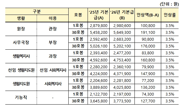 이는 예년의 1%p 안팎이던 상승분을 약 2배가량 높인 수치로, 사회복지시설 종사자 처우개선에 대한 정부의 의지가 반영된 결과이다. 처우개선 실현을 위해 '26년 10종 국고지원시설 예산은 전년보다 7.6% 인상된 9,812억원이 편성됐다.