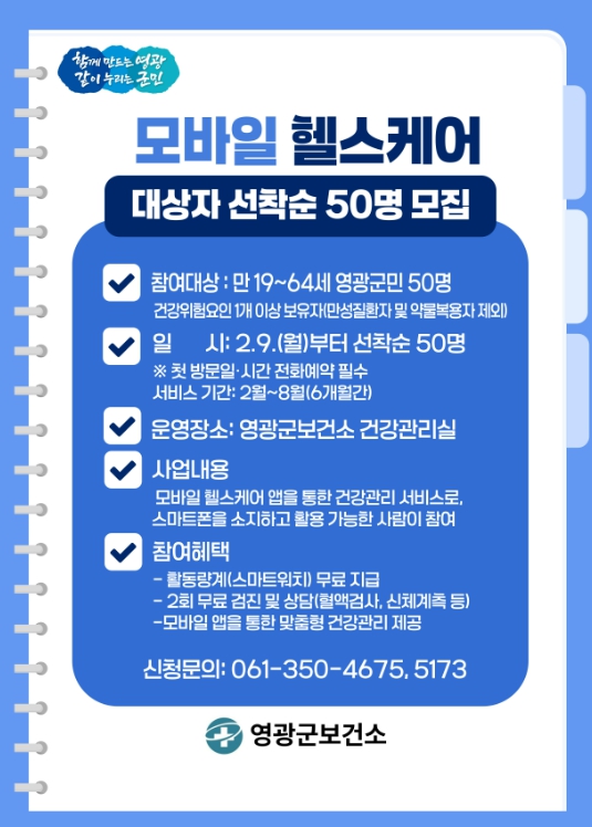 자세한 사항은 영광군보건소 건강정책팀으로 문의하면 된다.
