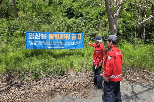 나주시는 5월 1일부터 5일까지 이어지는 연휴 기간에 산림 내 불법행위 증가가 예상됨에 따라 산불 예방과 불법 임산물 채취 집중 단속을 실시한다고 29일 밝혔다.