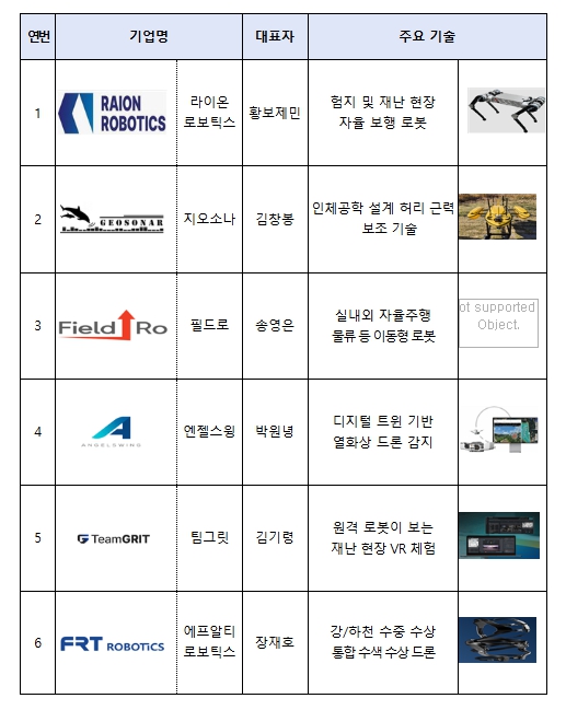 1차로 ‘로봇’ 분야에 대해 경찰청, 국가유산청, 육군본부, 서울시 소방재난본부, 해양경찰청 등 5개 정부기관이 수요기관으로 참여하고, 창업기업 20개사와 실증 협업을 추진한다. 2차로는 ‘스마트 시티’ 분야의 수요기관을 모집하여 창업기업의 실증을 지원할 예정이다.