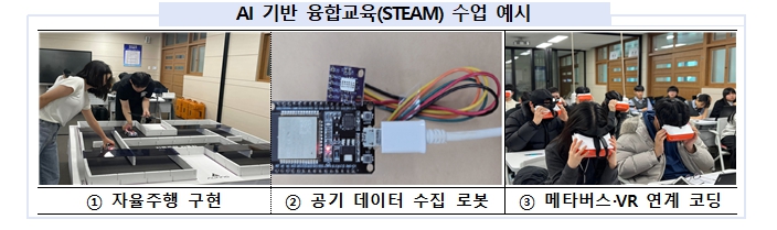 학생들은 융합교육(STEAM) 동아리 활동에 참여해 과학, 수학, 정보 등 인공지능(AI)의 기반이 되는 교과 중심으로 문제를 탐구하고, 여기에 인문학, 예술 등 다양한 분야를 결합하여 창의적인 해결 방안을 도출하게 된다. 이를 통해 단순한 지식 습득을 넘어, 스스로 문제를 정의하고 해결하는 경험을 축적할 수 있을 것으로 기대된다.