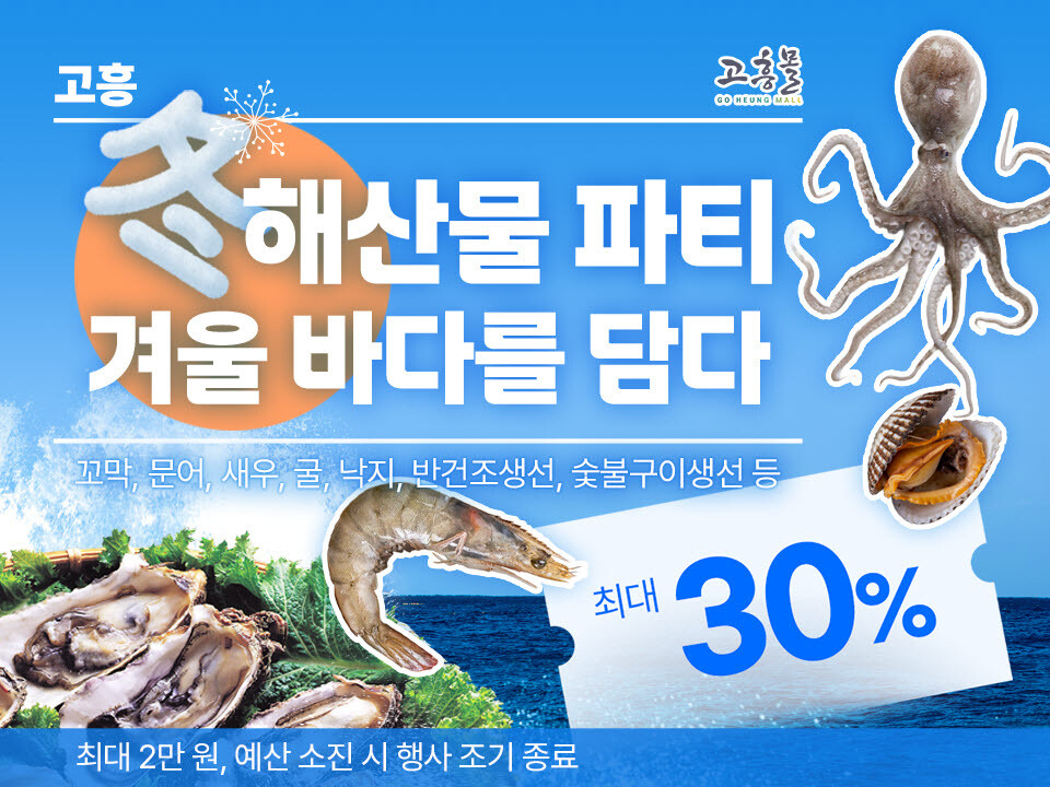 고흥군이 운영하는 온라인 농수축특산물 쇼핑몰 ‘고흥몰’이 본격적인 겨울철을 맞아 고흥산 수산물을 집중 소개하는 특별 할인전에 나선다. 고흥군은 12월 2일부터 9일까지 일주일간 ‘고흥 동(冬)해산물 파티–겨울 바다를 담다’ 기획전을 열고, 겨울 제철 수산물을 최대 30% 할인된 가격에 선보인다고 밝혔다.