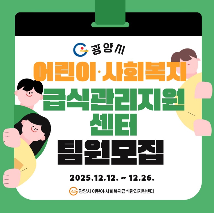 서류 접수 기간은 12월 12일부터 26일까지이며, 지원 자격은 영양사 면허증, 위생사 면허증, 식품(산업)기사 자격증 중 하나 이상을 소지하고 2025년 12월 11일 기준 광양시에 주민등록이 돼 있는 사람이다.