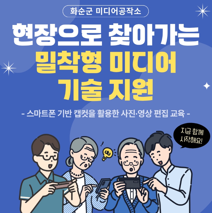 이번 교육은 화순군 청년센터 내에 있는 미디어공작소가 주관해, 희망자가 소그룹을 이뤄 신청하면 원하는 장소로 직접 찾아가는 방식으로 운영된다.