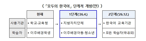 교육 현장에서 활용하는 사례가 늘어나면서, 유·초·중·고등학교·대학‧교육청뿐 아니라 보다 많은 기관과 학습자들이 활용할 수 있도록 개편할 필요성이 제기됐다. 특히, 지난 3월 19일 열린 ‘이주배경학생 교육 지원을 위한 교육청-지방자치단체 협업 공동연수(워크숍)’에서 소개된 '모두의 한국어' 시스템에 대해, 지방자치단체에서도 사용할 수 있게 해달라는 요청이 있었다.