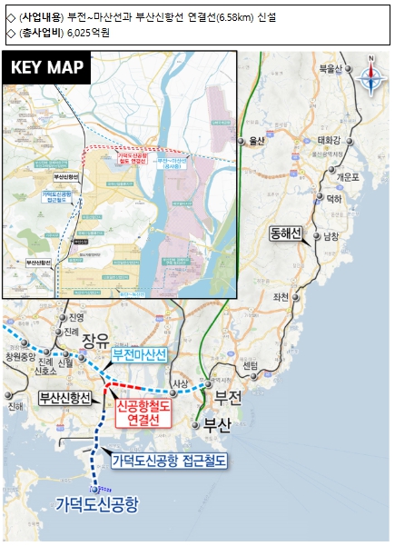 본 사업은 건설 중인 부전~마산 복선전철과 운영 중인 부산신항선을 잇는 6.58km의 연결선(삼각선)을 신설하는 사업으로, 총사업비 6,025억 원이 투입될 예정이다.