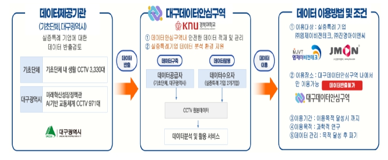 아울러 ‘데이터안심구역 기반 지자체 폐쇄회로 텔레비전(CCTV) 원본 데이터 활용 규제 유예제도(규제샌드박스) 실증 특례’를 통해 대구시 등에서 수집한 폐쇄회로 텔레비전(CCTV) 영상 원본데이터를 대구데이터안심구역에 개방하고, 관련 기업이 고성능 인공지능 모델 개발을 위한 학습 데이터로 활용할 수 있도록 할 예정이다.