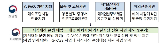 우리 기업의 우수한 기술경쟁력 확보를 위해서는 초기 단계부터 지식재산을 확보하고 보호하는 것이 점점 중요해지는 상황에서, 이번 협약은 해외조달시장 진출 과정에서 발생할 수 있는 지식재산 분쟁과 기술유출 위험에 효과적으로 대응할 수 있도록 양 기관의 정책과 지원사업을 연계하기 위해 마련되었다.