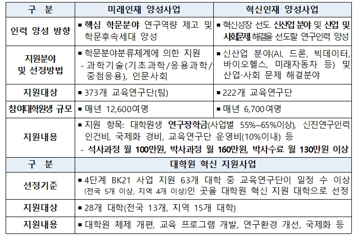 이어, 4단계 두뇌한국(BK)21 사업에 참여한 석·박사 대학원생, 박사후연구원 등 참여 인력과의 간담회를 통해 대학과 연구 현장에서 겪고 있는 애로사항을 공유하고, 향후 사업에 대한 정책적인 개선 방안을 논의한다.