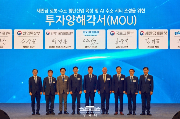 이 대통령은 "정부를 믿고 이런 대결단을 해 준 우리 현대차그룹에 우리 국민을 대신해 다시 한번 진심으로 감사드린다"며 "전북의 성장과 발전의 상징인 이곳 새만금에서 전북의 미래, 대한민국의 내일을 이끌 새로운 성장 동력이 마련될 것"이라고 강조했다.