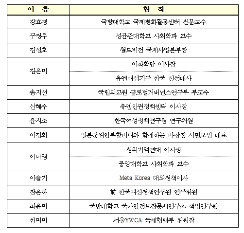 금번에 출범한 2기 자문위원회를 통해 급변하는 국제 정세와 AI 등 신기술과 같은 새로운 글로벌 도전과제에 대응하여 출범 9년차를 맞이하는 '여성과 함께하는 평화 구상'의 향후 추진 방향에 대해 전문적인 시각과 소통의 계기가 마련된 것으로 평가된다. 이를 바탕으로 외교부는 인권 및 국제평화‧안보 등 분야에서 보다 주도적인 역할을 수행하며 글로벌 책임강국으로서 위상을 제고해 나가기 위한 노력을 지속할 예정이다.